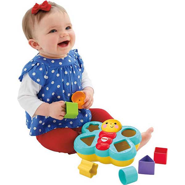 Aυτή η πεταλούδα της Fisher-Price® έχει έξι πολύχρωμα σχήματα για ταξινόμηση και παιχνίδι στο νερό! Ακόμα και το πιο μικρό σε ηλικία μωρό μπορεί να αφαιρέσει την κορυφή και να παίξει. Ταιριάζοντας τα σχήματα στα ανοίγματα, το μωρό διασκεδάζει και προσπαθεί να τα καταφέρει ξανά και ξανά, αναπτύσσοντας τις λεπτές κινήσεις του και το συντονισμό όρασης-κίνησής του.